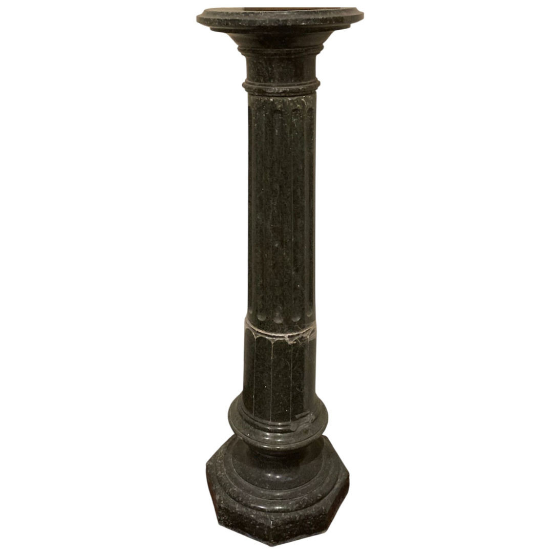 Colonna in marmo grigio con fusto scanalato, base ottagonale e ripiano circolare.