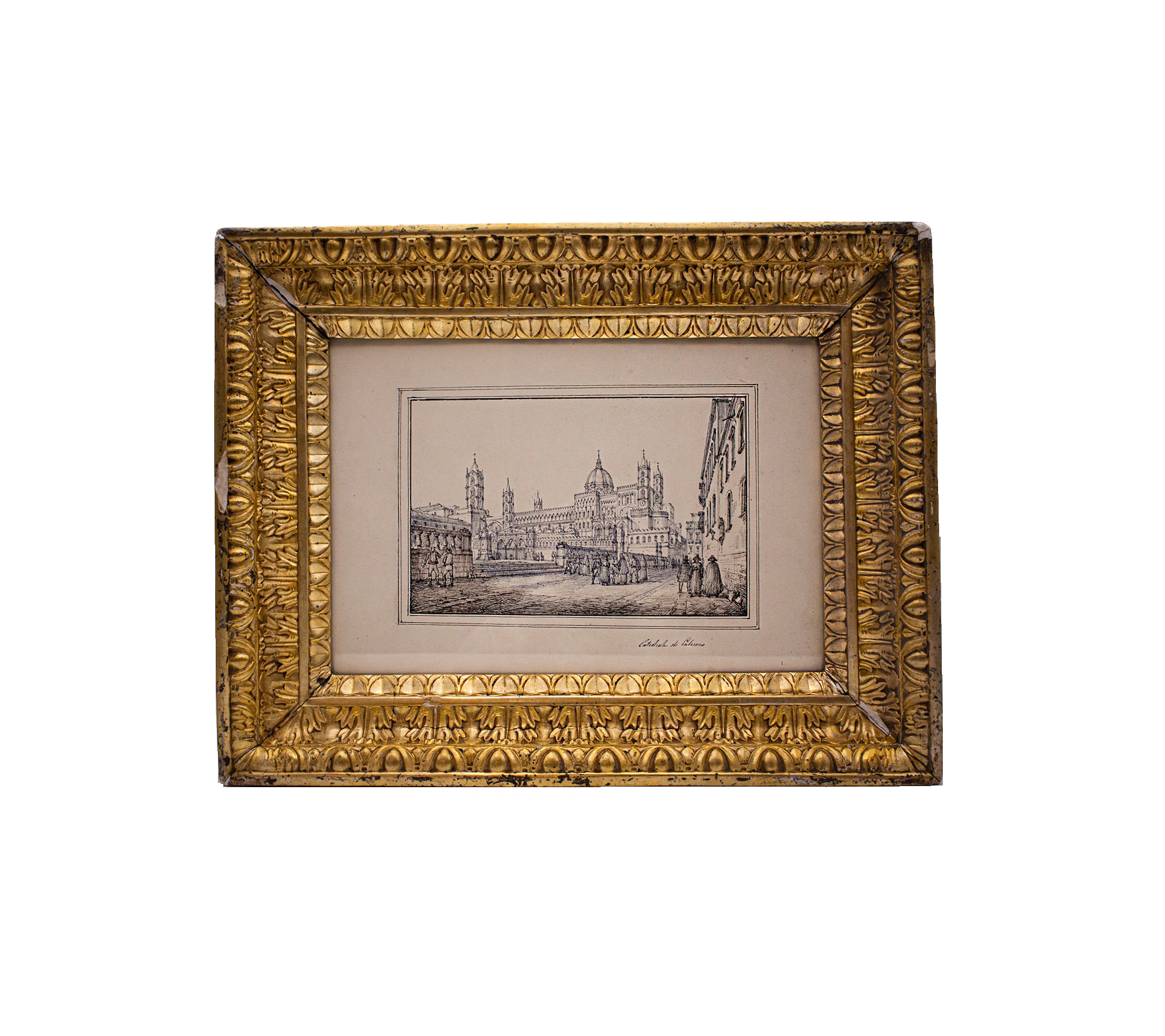 Coppia di chine raffiguranti una, la cattedrale, l’altra, la marina di Palermo.
