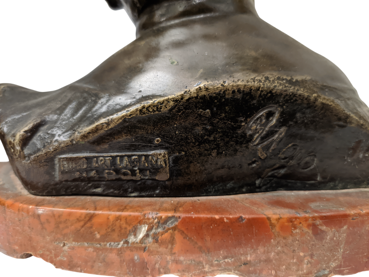 Antonio Ugo (1860-1950) fu uno scultore siciliano noto per il suo contributo all’arte e all’architettura di Palermo. Nato a Palermo nel 1860, Ugo studiò presso l’Accademia di Belle Arti di Palermo, dove iniziò a farsi conoscere per la sua abilità nella lavorazione del bronzo. Le sue opere, in gran parte sculture, comprendono sia monumenti pubblici sia piccole opere che celebrano la vita e la cultura siciliana. Le sue sculture adornano ancora oggi molte piazze e luoghi storici di Palermo, aggiungendo prestigio al centro storico della città. Ugo viene ricordato come una figura centrale della scultura siciliana e italiana tra il XIX e il XX secolo.