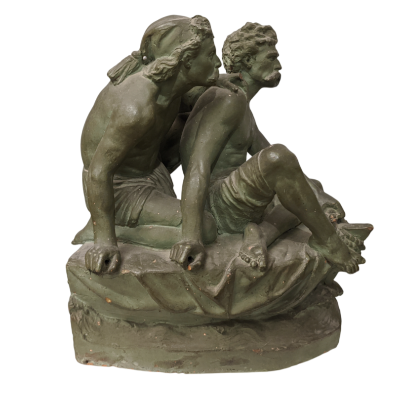 Bozzetto preparatorio, in terracotta, della celebre scultura in marmo “fratelli Kanaris o I marinai del Giardino Inglese”, realizzata dallo scultore italiano Benedetto Civiletti nel 1878 a Palermo.
