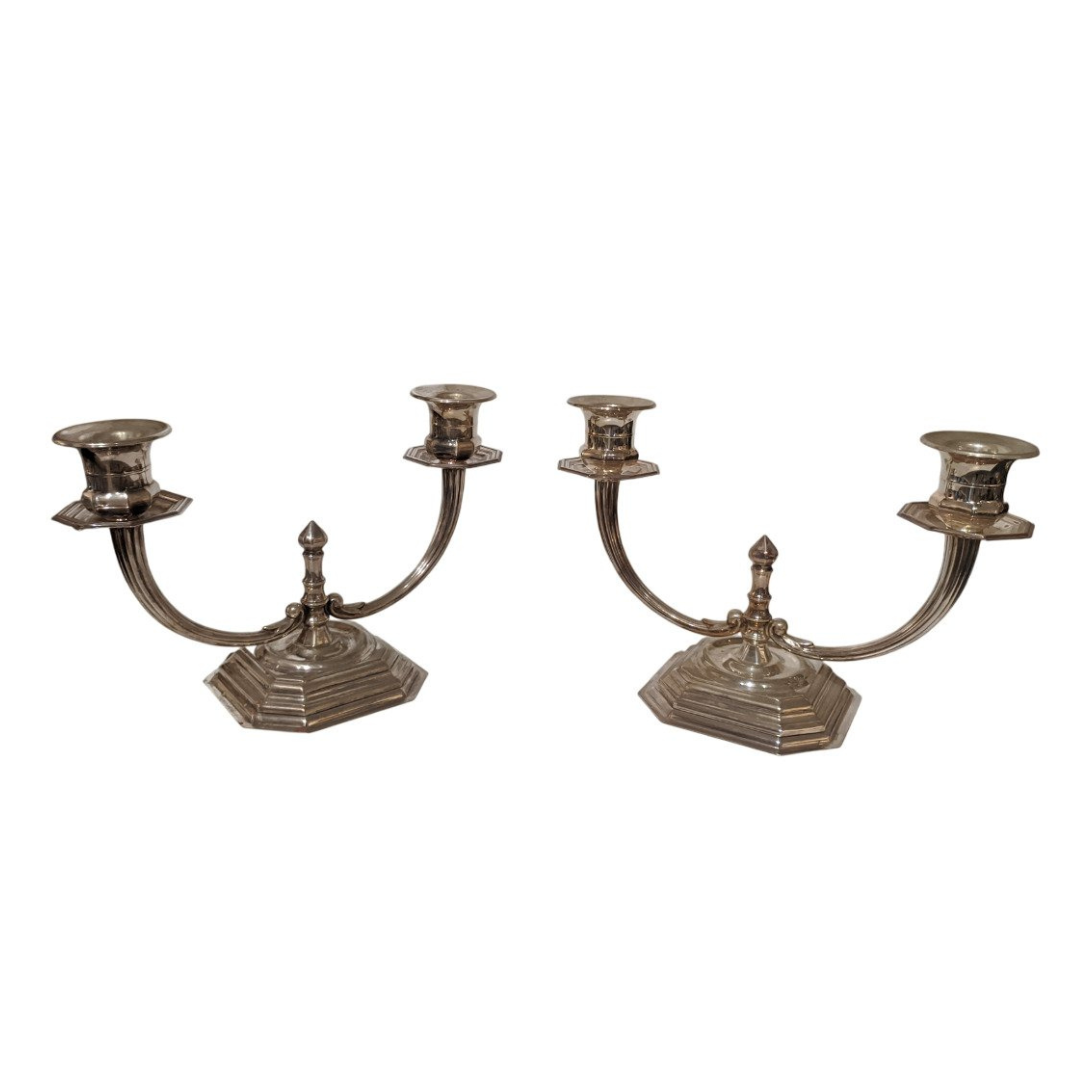 Candelabri a due bracci in argento 800 realizzato in Italia nel 1950 ca. Greggio.
