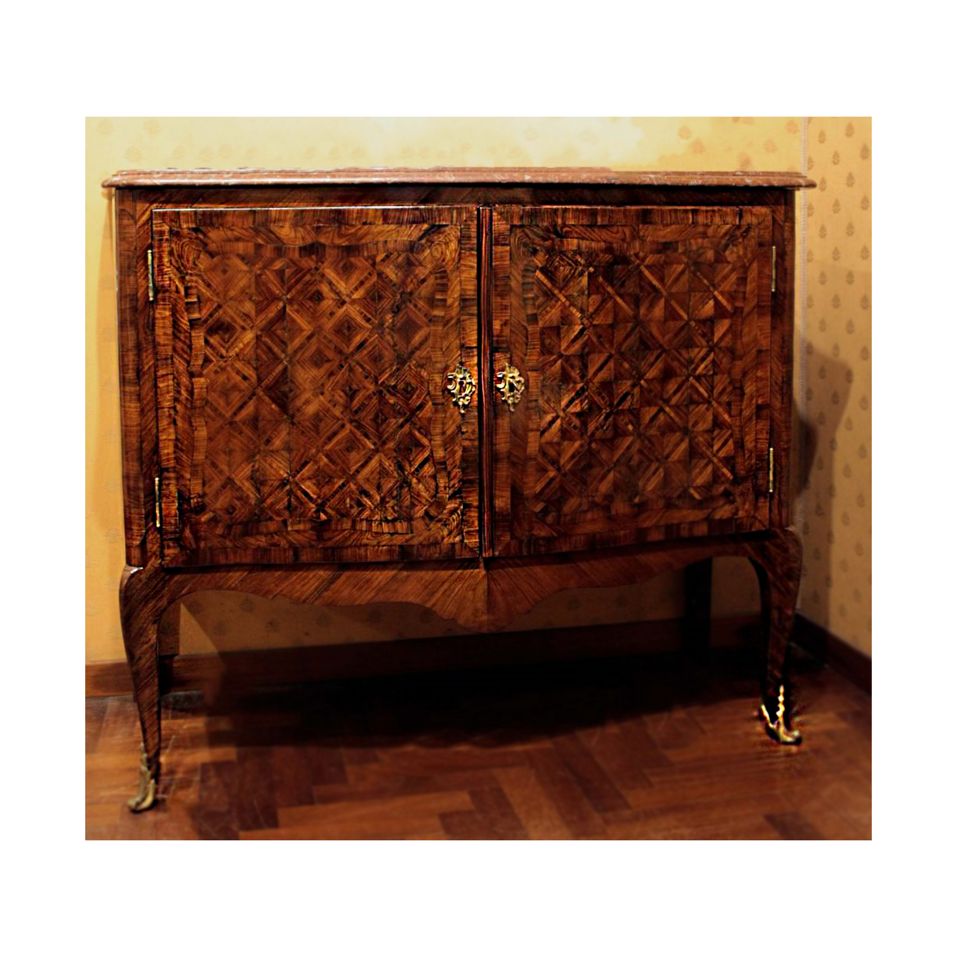 intarsio a “marchettatura” in bois de violette, piano in marmo Rosso Francia,