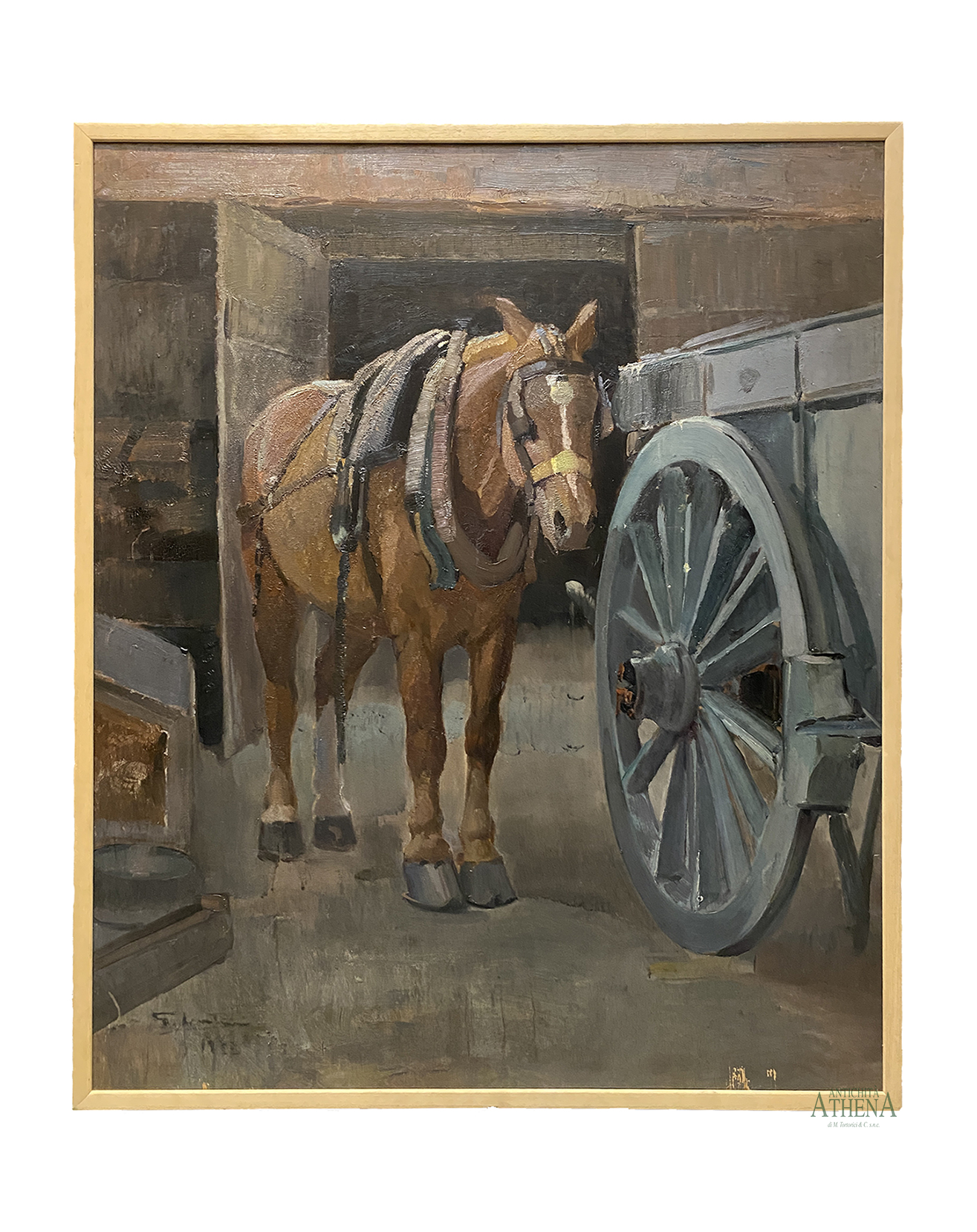 Qui presentato un olio su tavola, “Cavallo al carro”, della collezione posseduta da Antichità Athena.