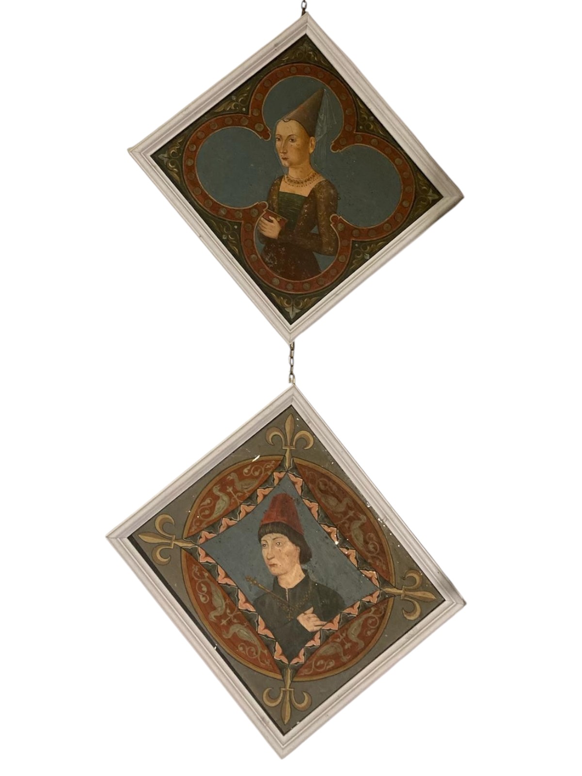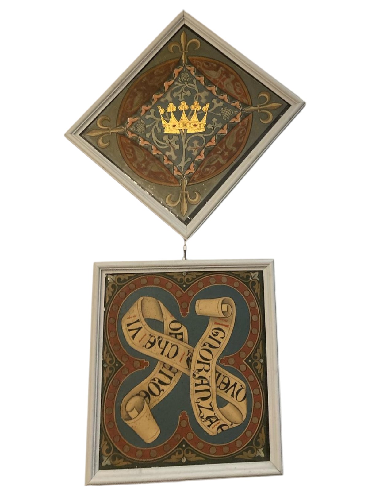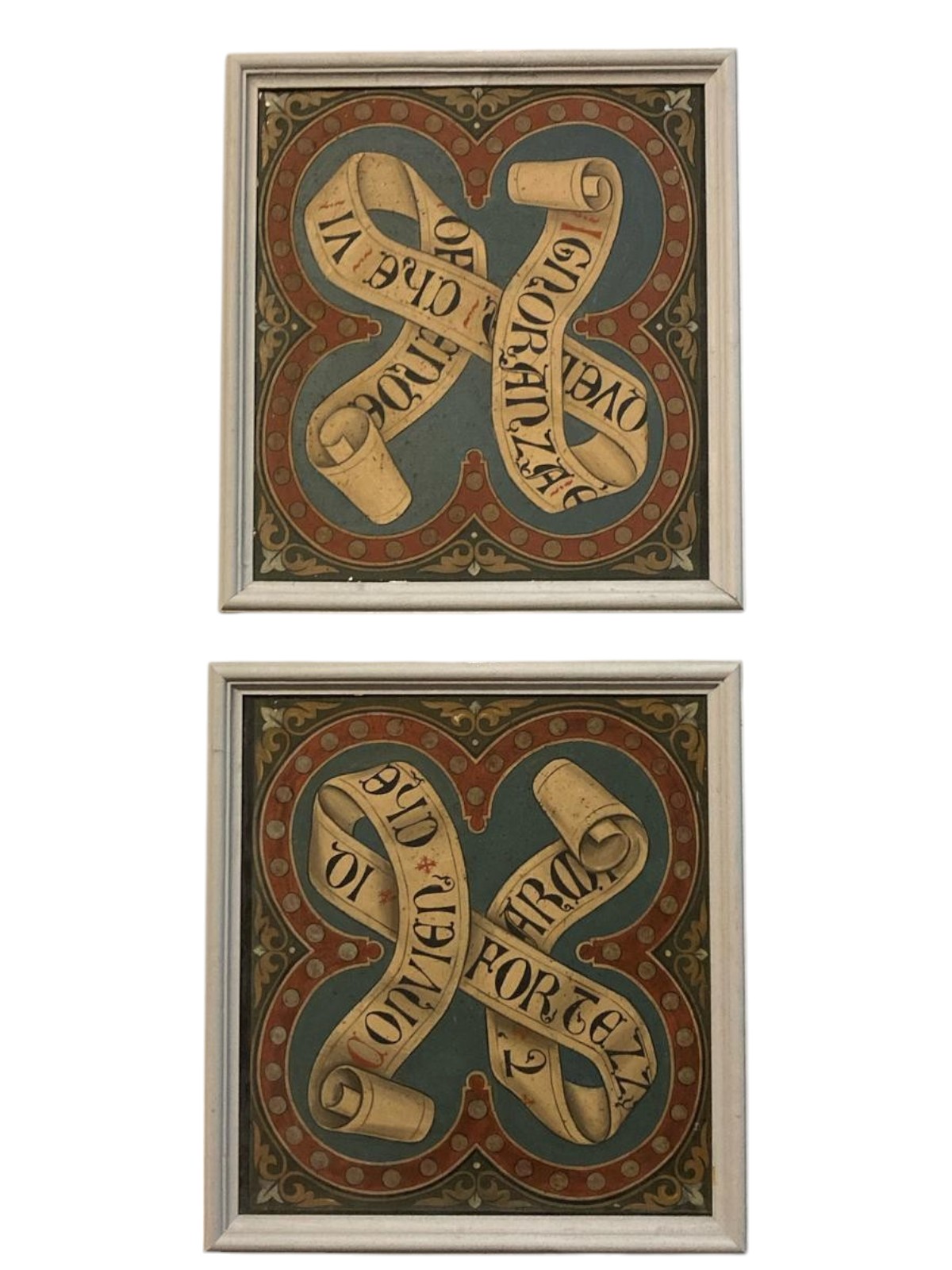 spazi te stanti coppie di corone principesche o cartigli entro quadrilobi con versi poetici danteschi,