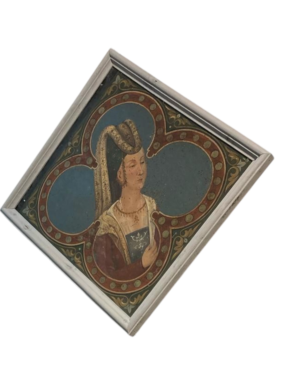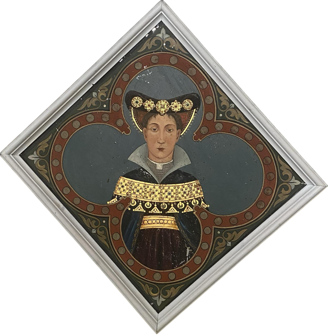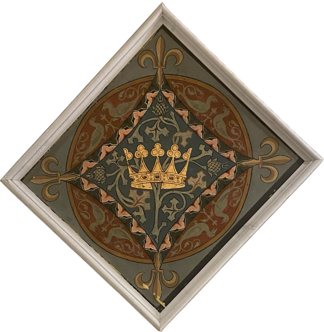 spazi te stanti coppie di corone principesche o cartigli entro quadrilobi con versi poetici danteschi,