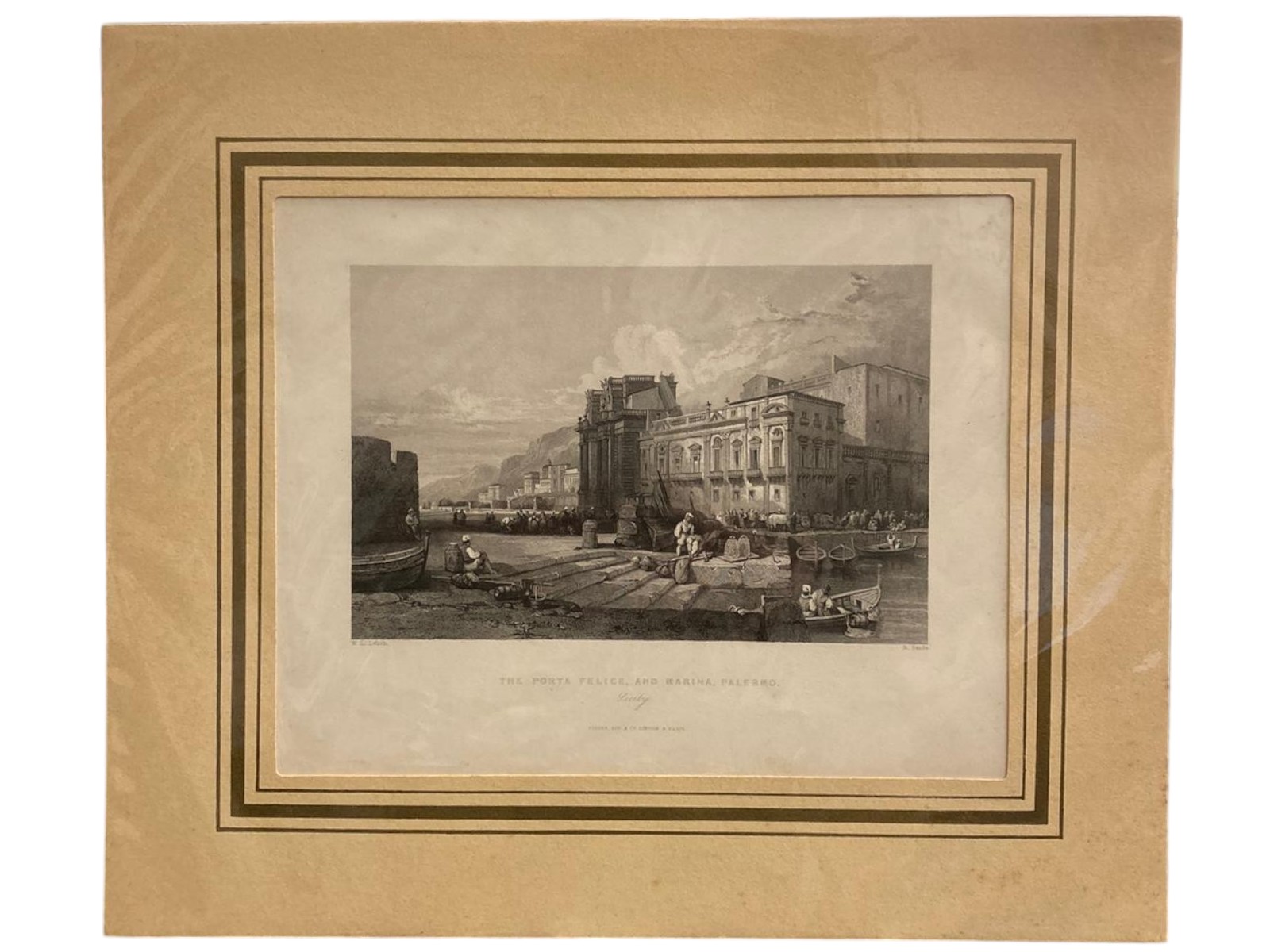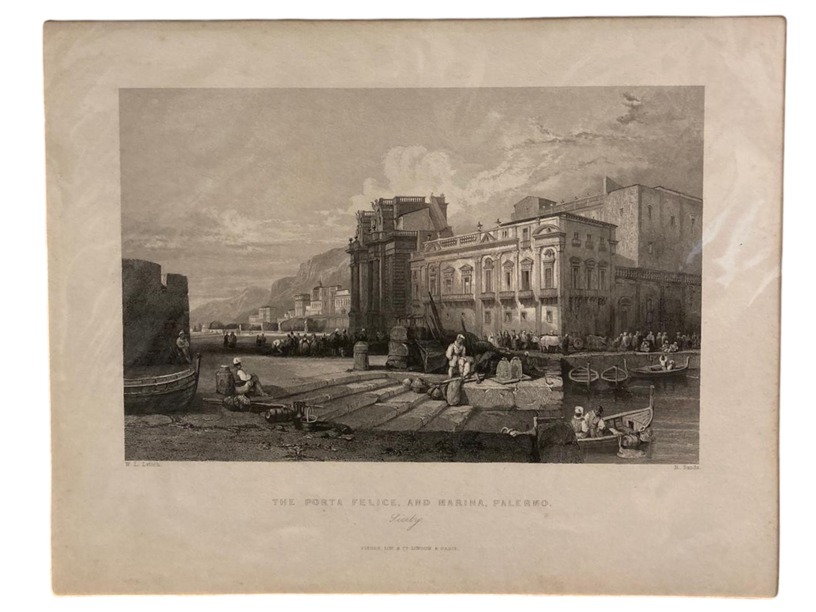Stampa raffigurante la Marina e porta Felice a Palermo realizzata nella tecnica dell’incisione su acciaio nel 1839 dall’autore R. Sands.