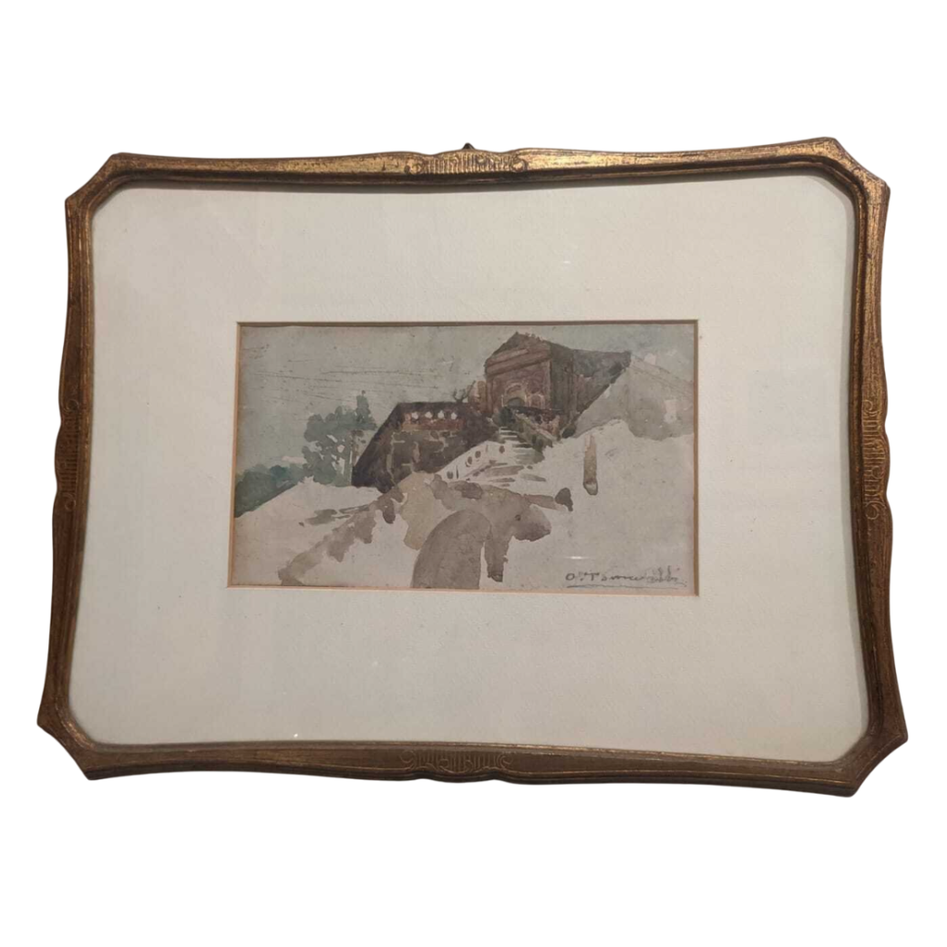 Onofrio Tomaselli (1881-1956) è stato un pittore e acquerellista italiano noto per le sue opere che ritraggono paesaggi e scorci della Sicilia e di altre regioni italiane. Nato a Palermo, Tomaselli si formò nella sua città natale, sviluppando uno stile personale che prediligeva la rappresentazione del paesaggio naturale e urbano. La sua tecnica a acquerello era particolarmente apprezzata per la capacità di cogliere l’essenza dei luoghi con delicatezza e attenzione ai dettagli.