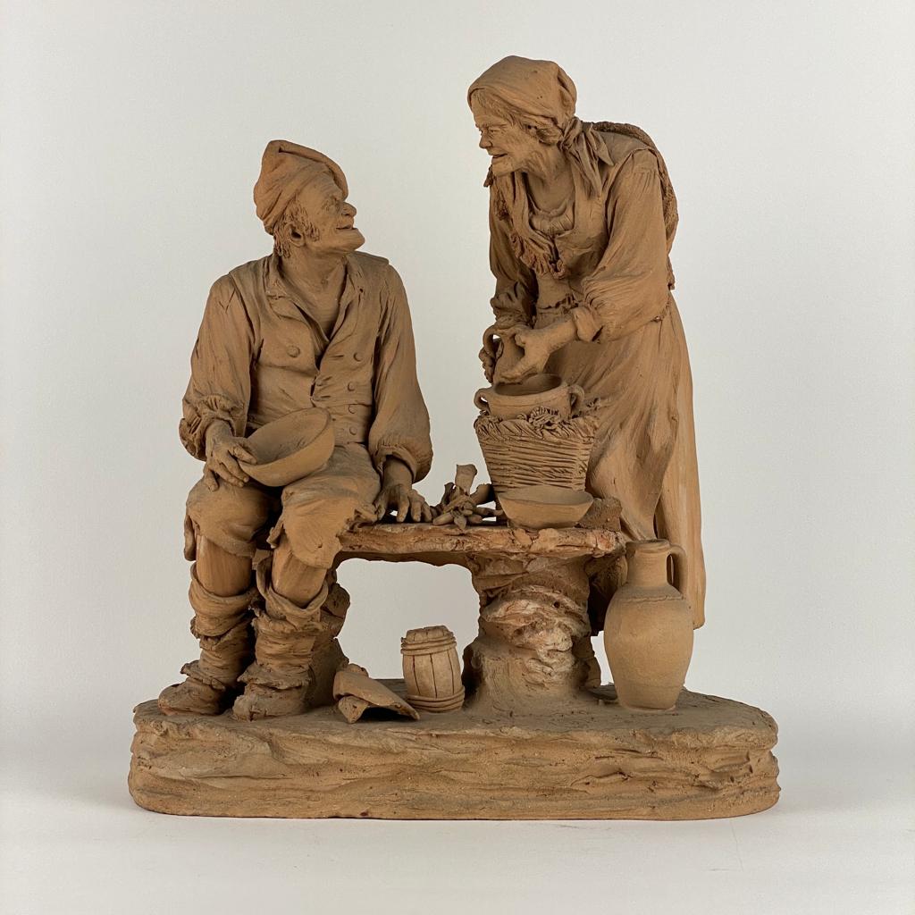 Gruppo in terracotta monocroma firmato G. Vaccaro