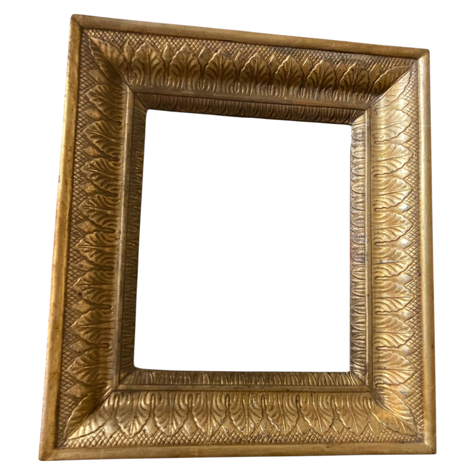 Piccola cornice in legno dorato e intagliato con decorazioni a foglie d’acanto.