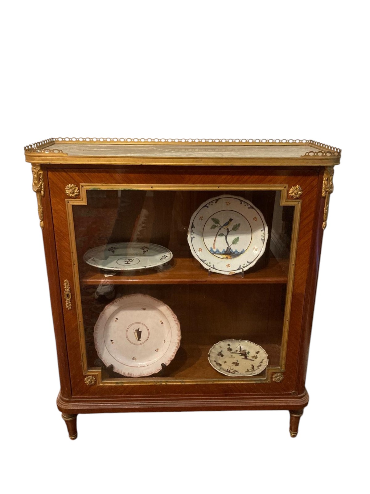 Etagere in bois de rose con guarnizioni in bronzo dorato e piano in marmo verde.