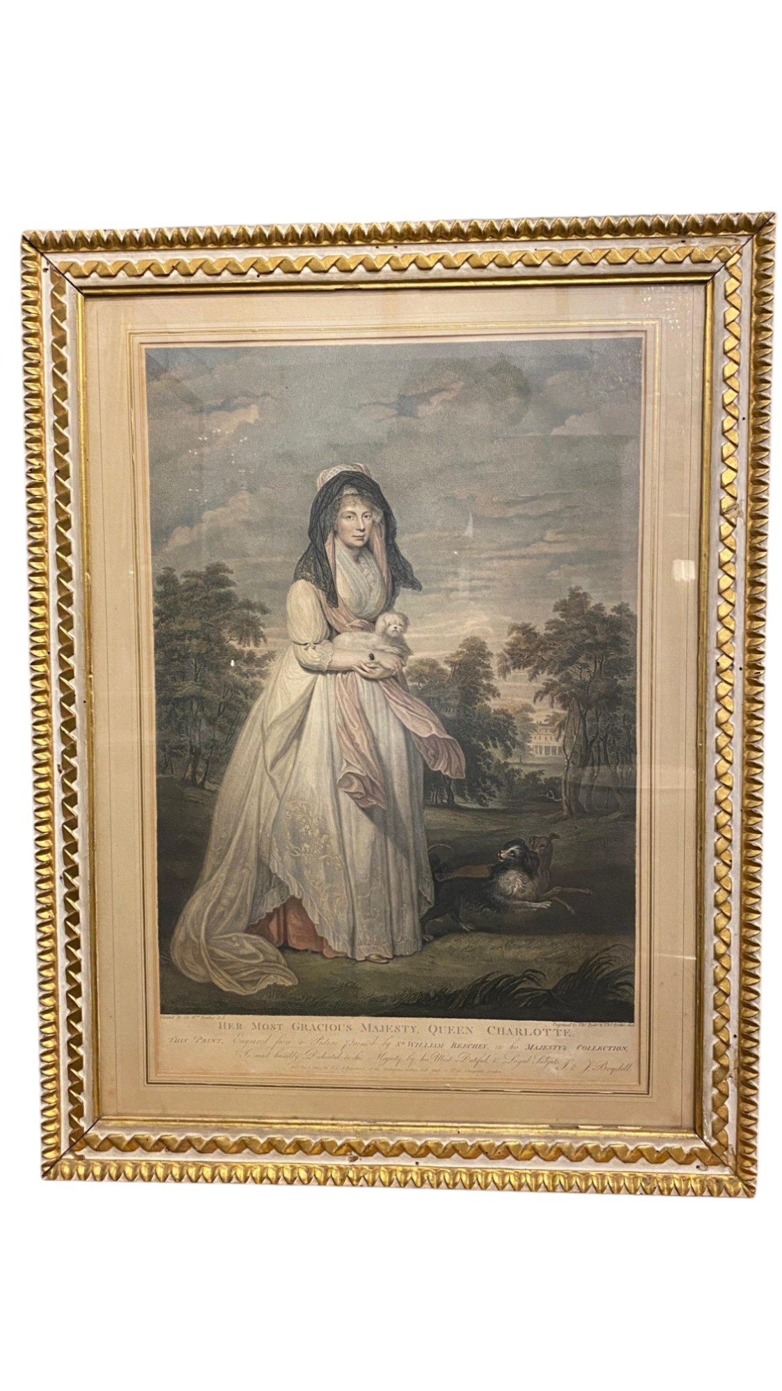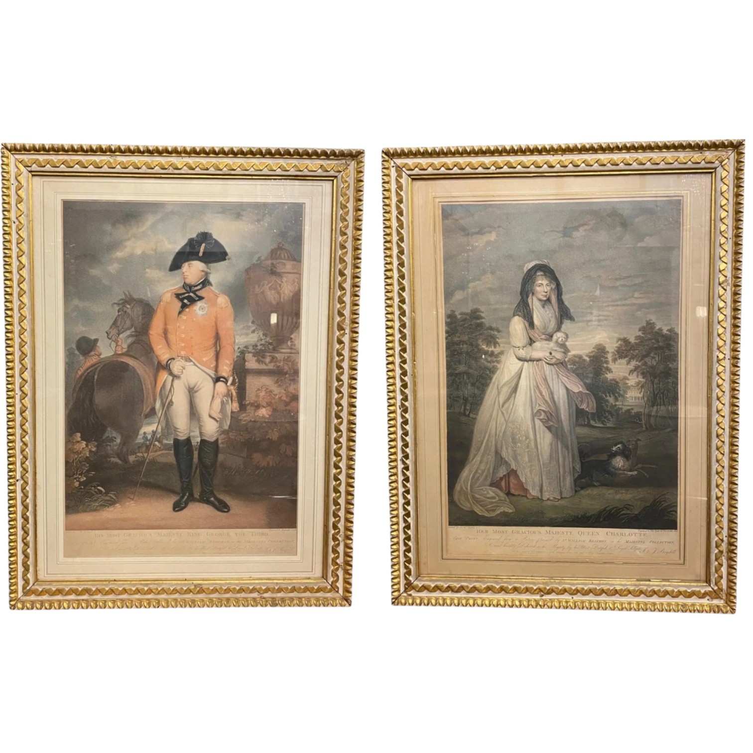 Stampa raffigurante Re Giorgio III e la Regina Carlotta realizzata nella prima metà del XIX secolo in Inghilterra, realizzata da un dipinto di Sir William Beechey e incisa da Tho. Ryder e Tho. Ryder, Junior.