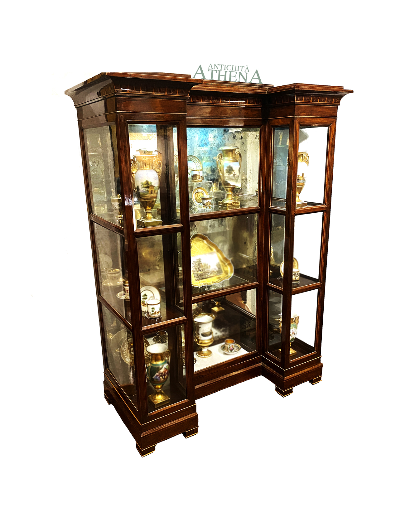 Vetrina in palissandro perfilata e intarsiata in bosso.